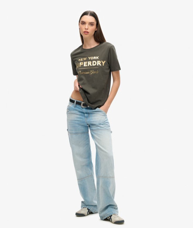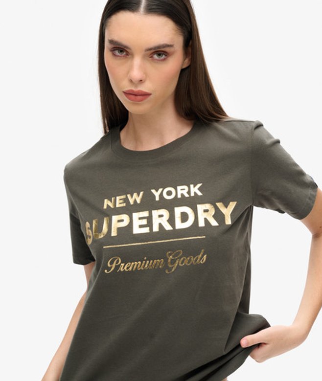 Superdry Women's Luxe Metallic Logo T-Shirt Dark Grey / Vintage Black
