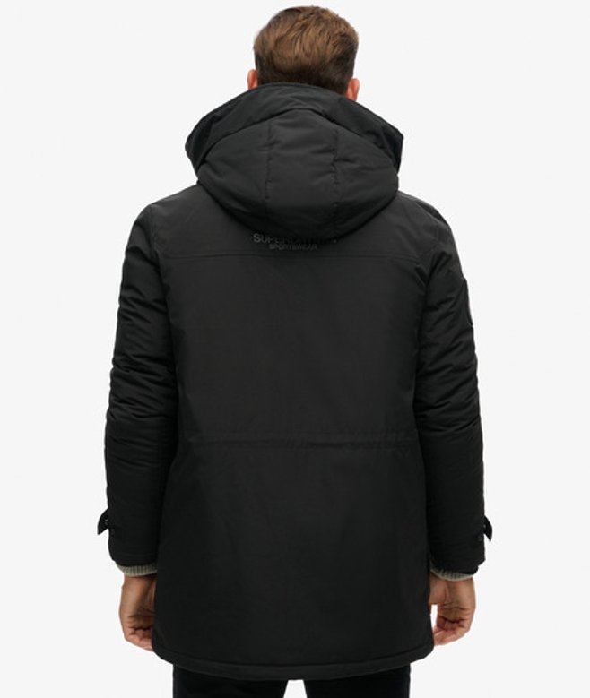 Superdry Men's Mens Loose Fit Logo Embroidered City Padded Parka Jacket, Black