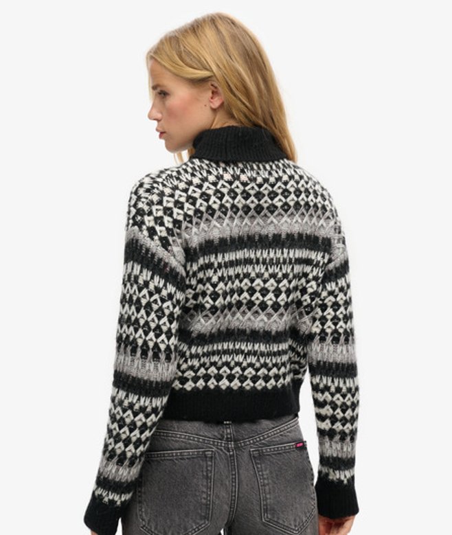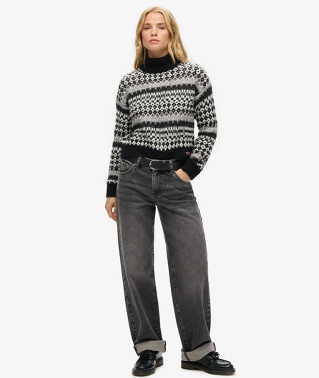 Loose Fit - where comfort meets cool, a stylish loose cut makes this a must-have shape Striped knitted pattern Roll neck Dropped shoulders Ribbed cuffs and hem Cropped length Superdry patch