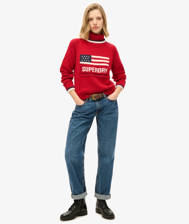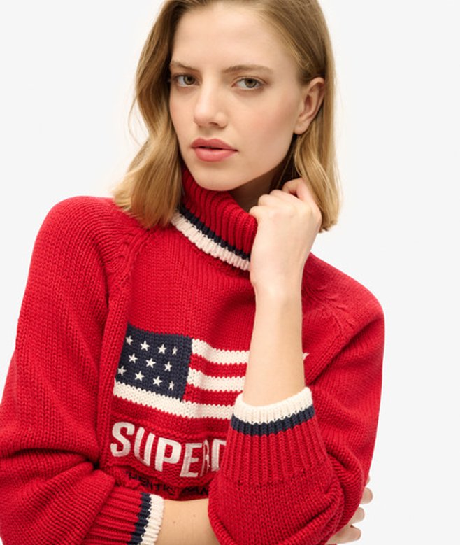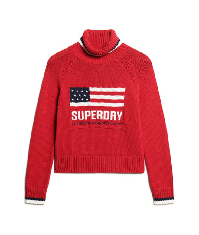 Superdry Women's Americana Roll Neck Knit Jumper Red / Risk Red
