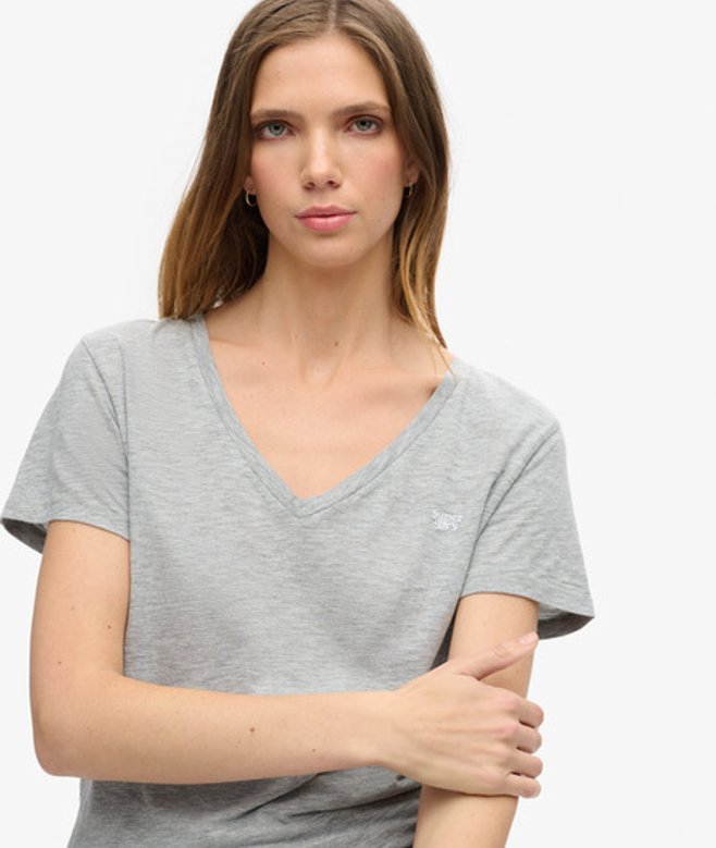 Superdry Ladies Classic Embroidered Slub V-Neck T-Shirt, Grey | ricciano UNITED KINGDOM