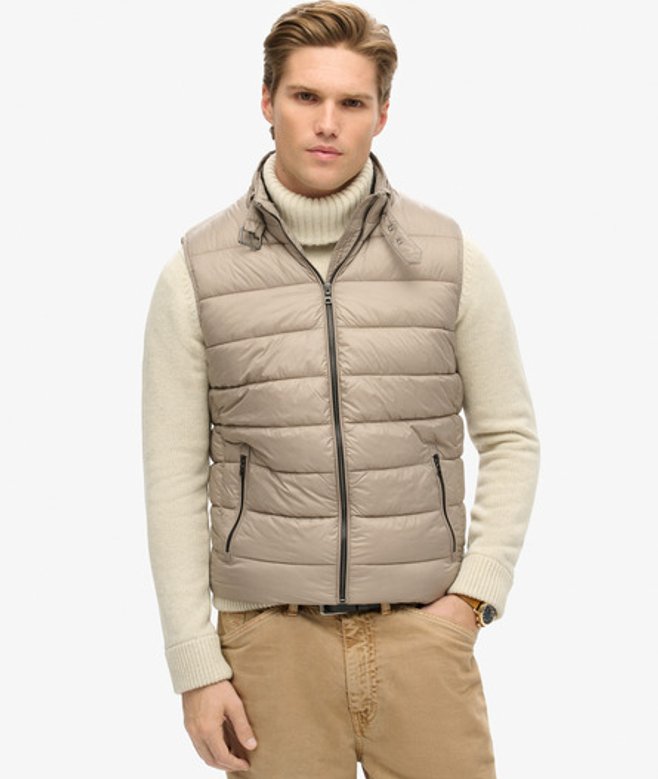 Superdry Mens Lightweight Quilted Padded Gilet, Beige
