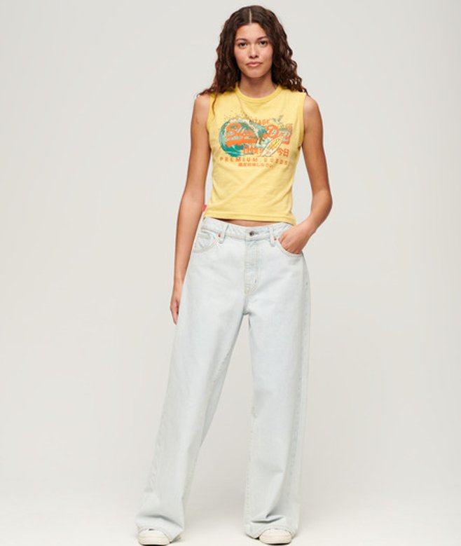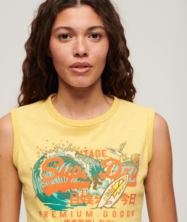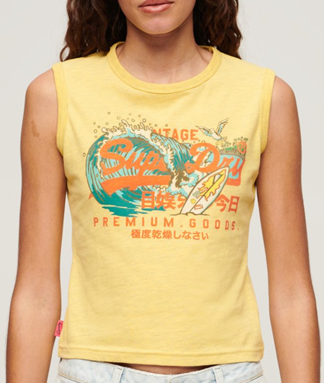 Superdry Ladies LA Vintage Logo Graphic Slim Vest Top, Yellow | ricciano UNITED KINGDOM