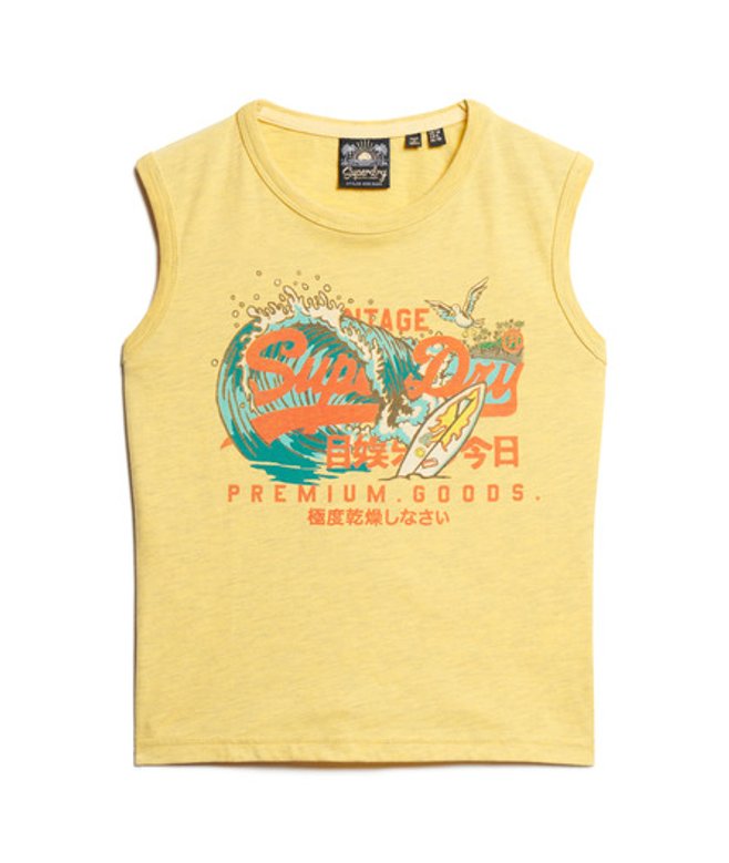 Superdry Ladies LA Vintage Logo Graphic Slim Vest Top, Yellow