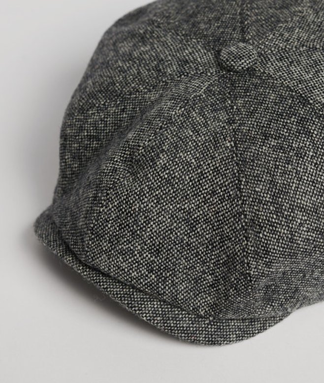 Superdry Mens Fully lined Herringbone Baker Boy Cap, Dark Grey