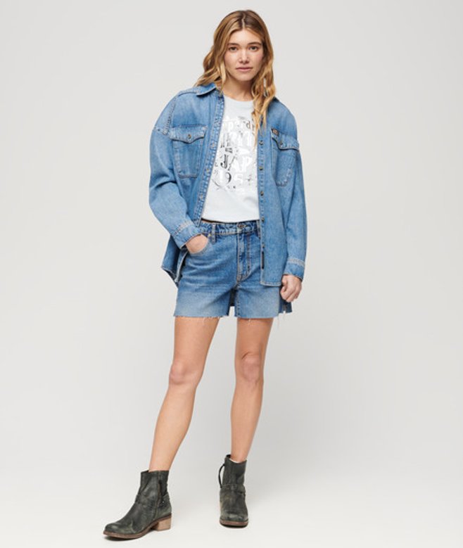Superdry Ladies Foil Workwear Fitted T-Shirt, Blue