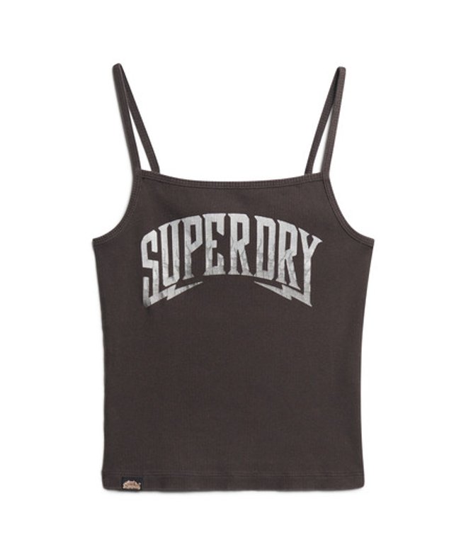 Superdry Ladies Retro Rocker Graphic Rib Cami Top, Dark Grey
