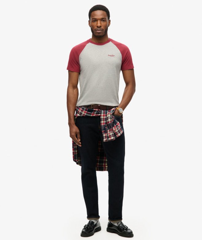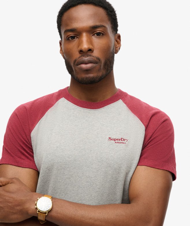 Superdry Men's Organic Cotton Essential Logo Baseball T-shirt Red / Grey Marl/vintage Red Marl