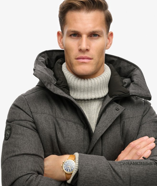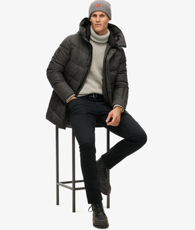 Superdry Men's City Chevron Padded Coat Dark Grey / Grey Herringbone