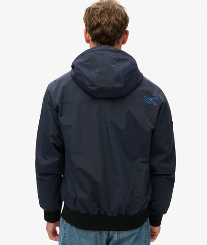 Superdry Mens Classic Embroidered Logo Surplus Nylon Hooded Bomber Jacket, Navy Blue