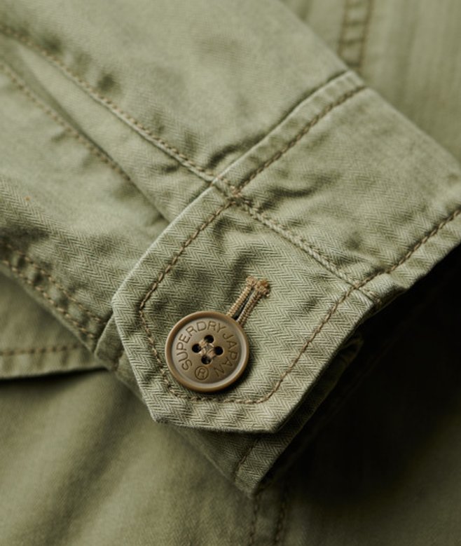 Go for your normal size Standard collar Zip and button fastening Four popper pockets Button cuffs Internal drawstring waist Internal pocket Superdry patch