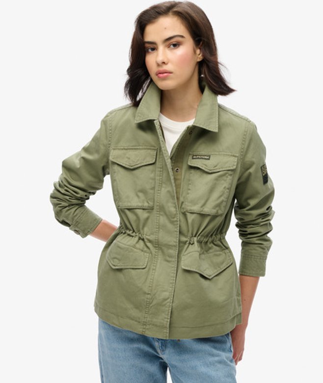 Superdry Ladies Classic Logo Patch Military M65 Jacket, Khaki
