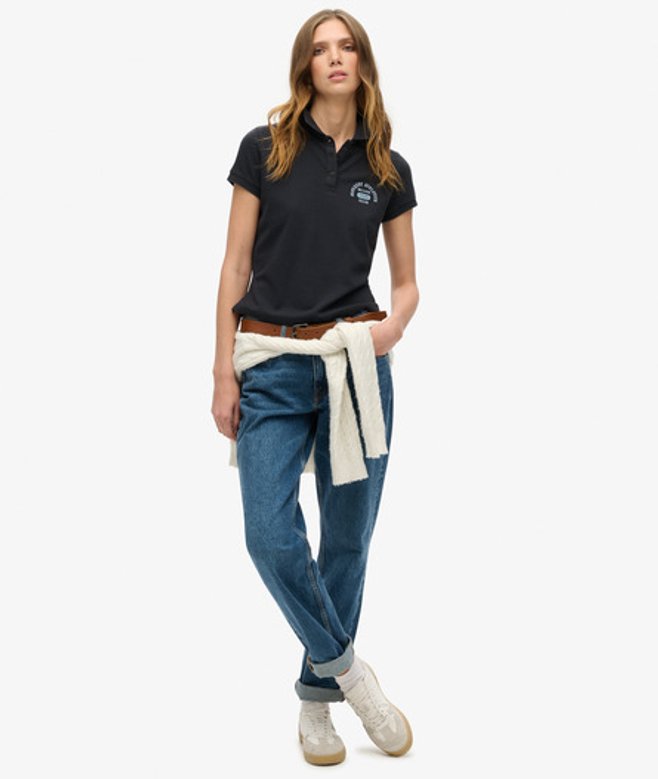 Superdry Women's Athletic Essentials 90s Fitted Polo Navy / Eclipse Navy