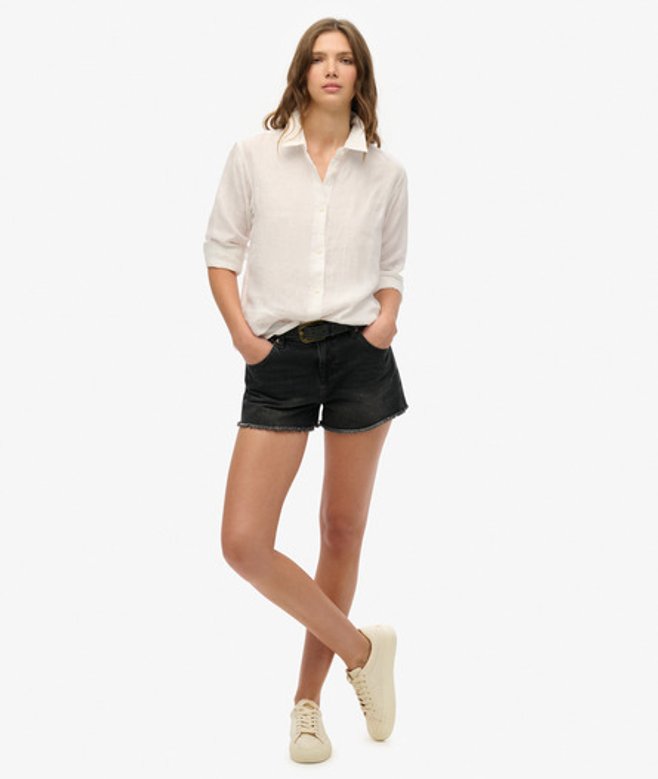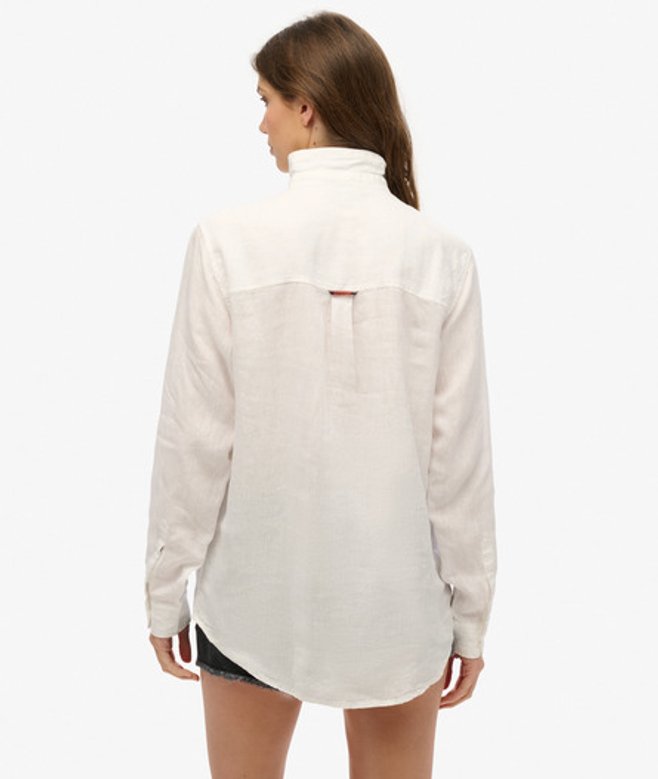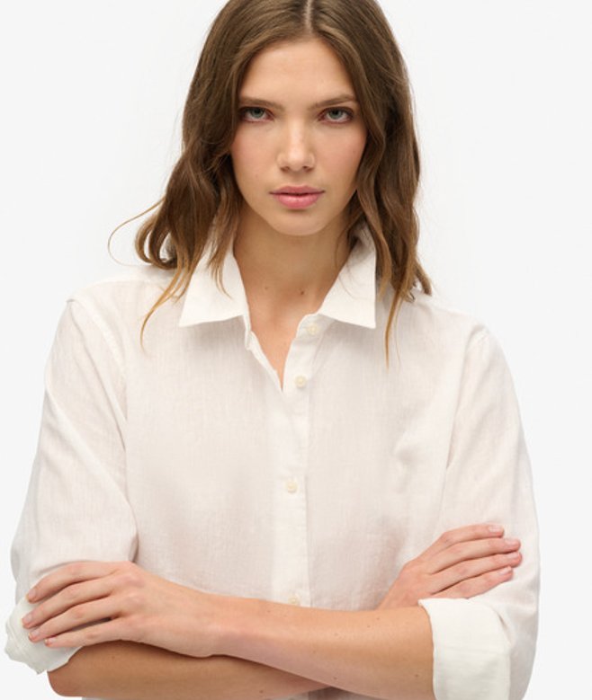 Superdry Women's Loose Fit Casual Linen Boyfriend Shirt, White | ricciano UNITED KINGDOM