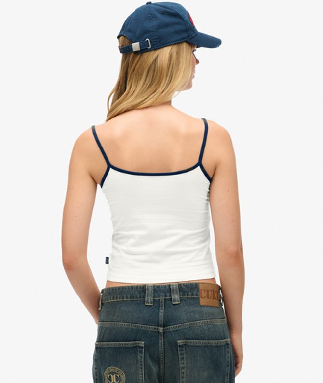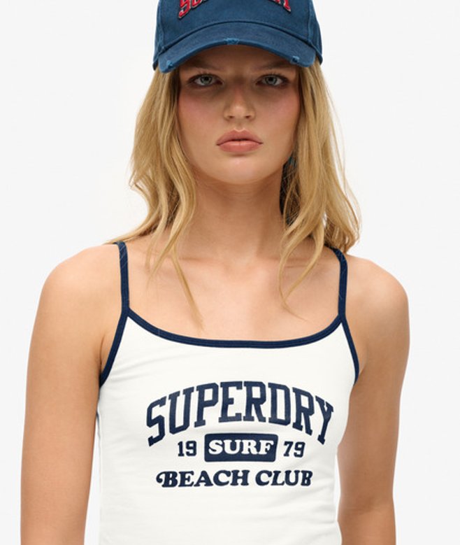 Superdry Ladies Slim Fit Logo Print Athletic Essentials Branded Cami Top, Off White | ricciano UNITED KINGDOM