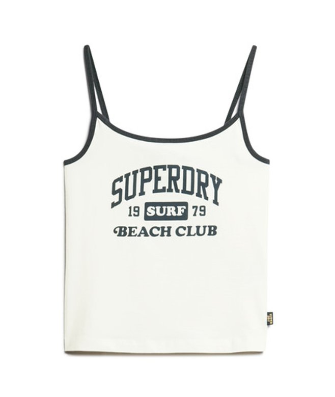 Superdry Ladies Slim Fit Logo Print Athletic Essentials Branded Cami Top, Off White
