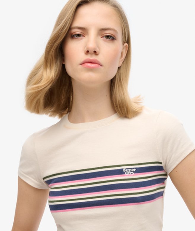 Superdry Women's Vintage Stripe Crop T-shirt Grey / Oatmeal Stripe | ricciano UNITED KINGDOM