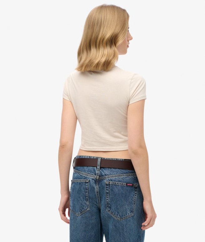Slim fit - designed to fit closer to the body for a more tailored look Cropped design Crew neck Short sleeves Embroidered logo