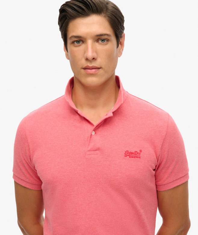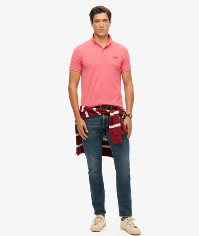 Go for your normal size Pique fabric Regular collar Two-button fastening Short sleeves Reinforced split side seams Taped collar lining Embroidered Superdry logo