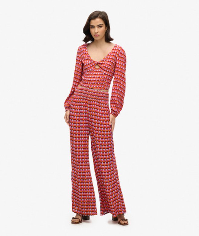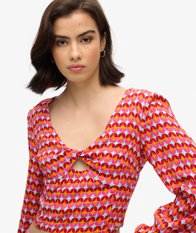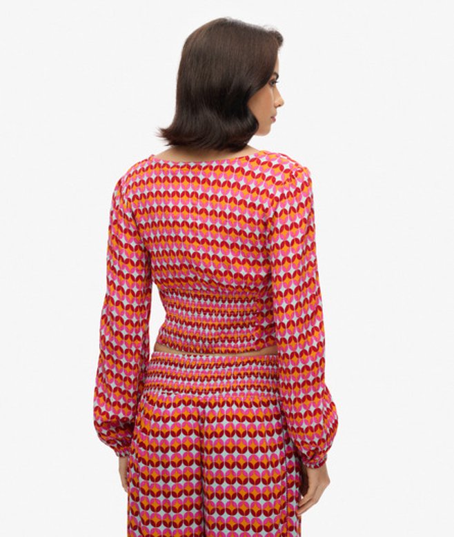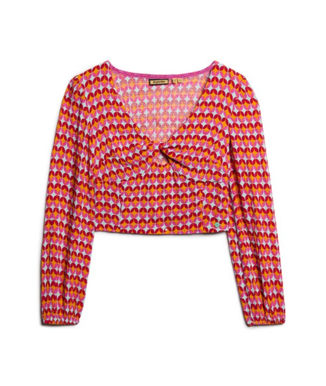 Superdry Women's Long Sleeve Woven Crop Top Pink / 70's Geo Pink