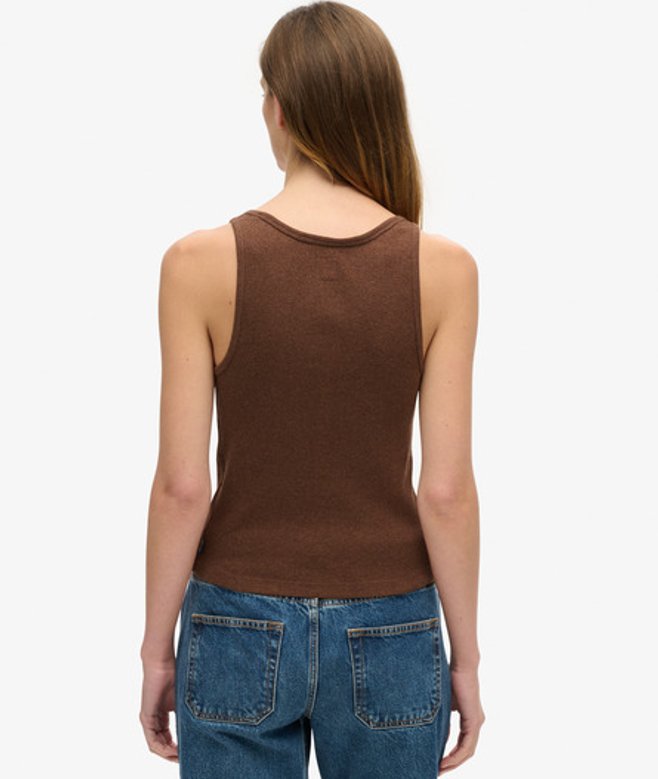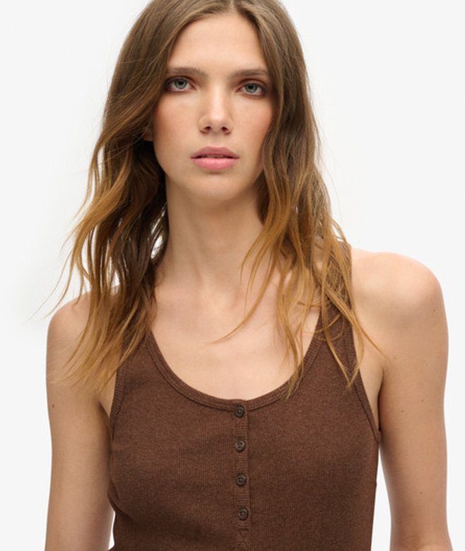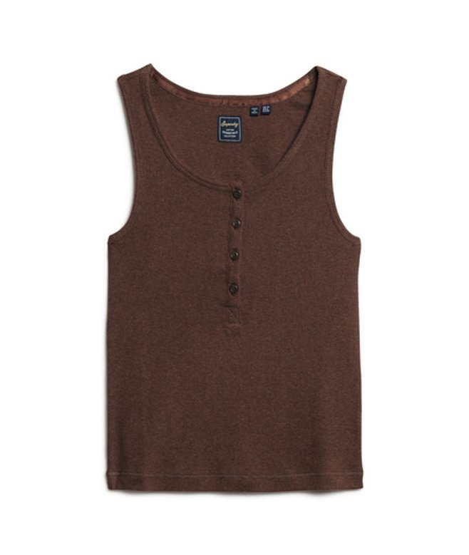 Superdry Ladies Slim Fit Ribbed Athletic Essentials Button Down Vest Top, Brown
