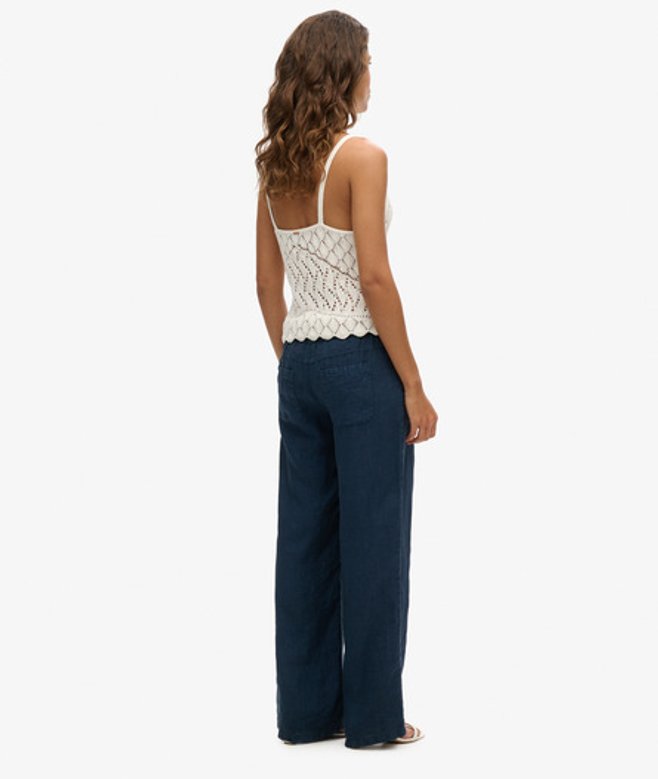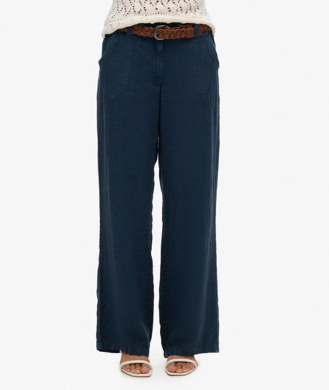 Superdry Women's Linen Low Rise Pants Navy / Dress Blue