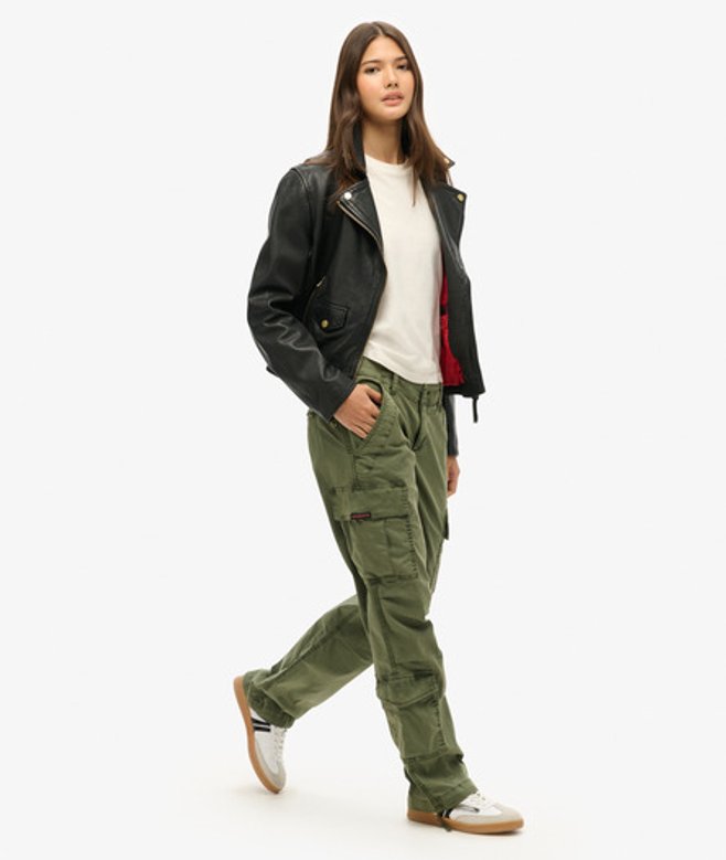 Superdry Ladies Loose Fit Low Rise Straight Cargo Pants, Green