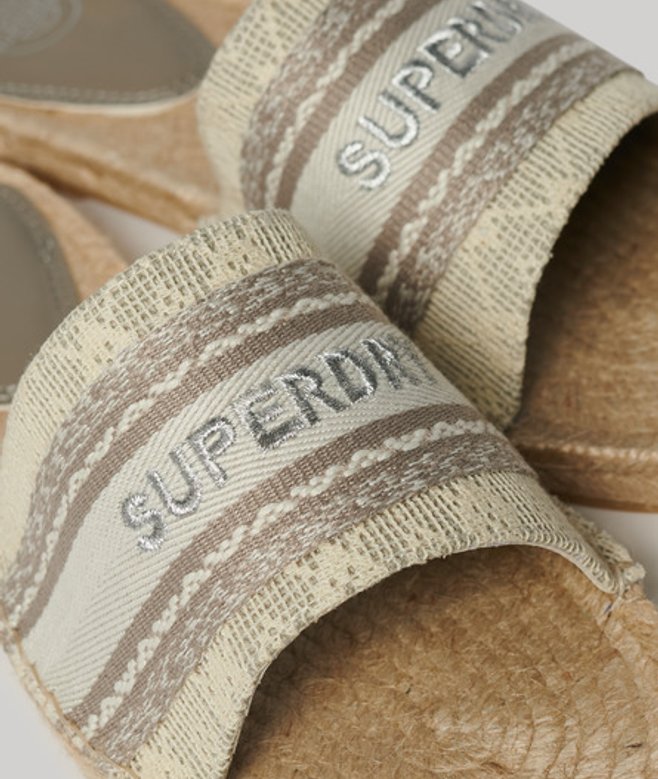 Superdry Women's Canvas Espadrille Overlay Sliders White / Moon Rock Grey | ricciano UNITED KINGDOM