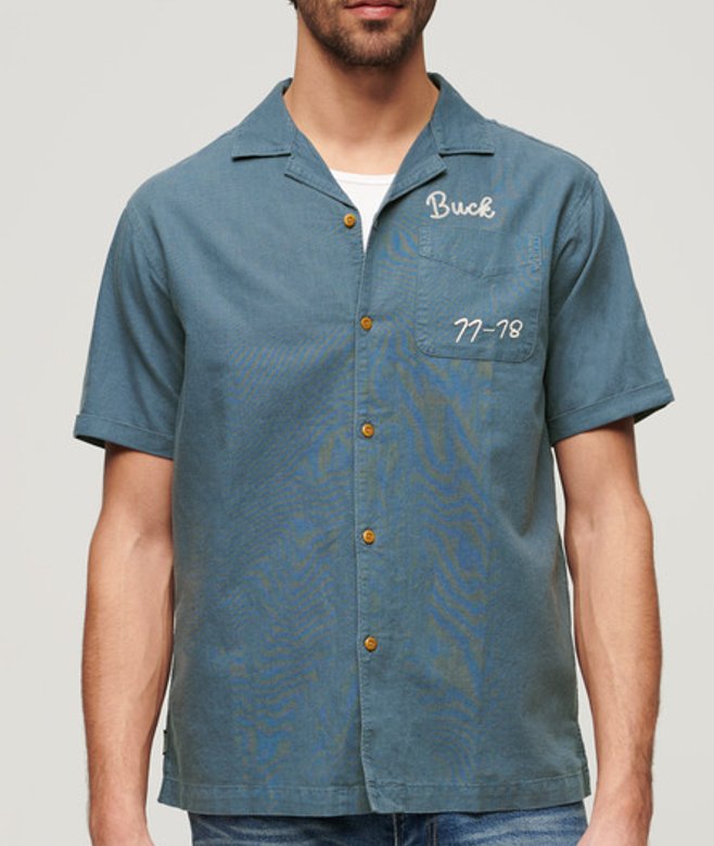 Go for your normal size Button fastening Short sleeves with turned-up hem Front chest pocket Embroidered detailing Signature Superdry tab