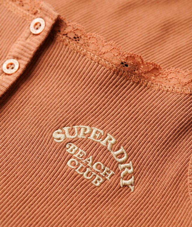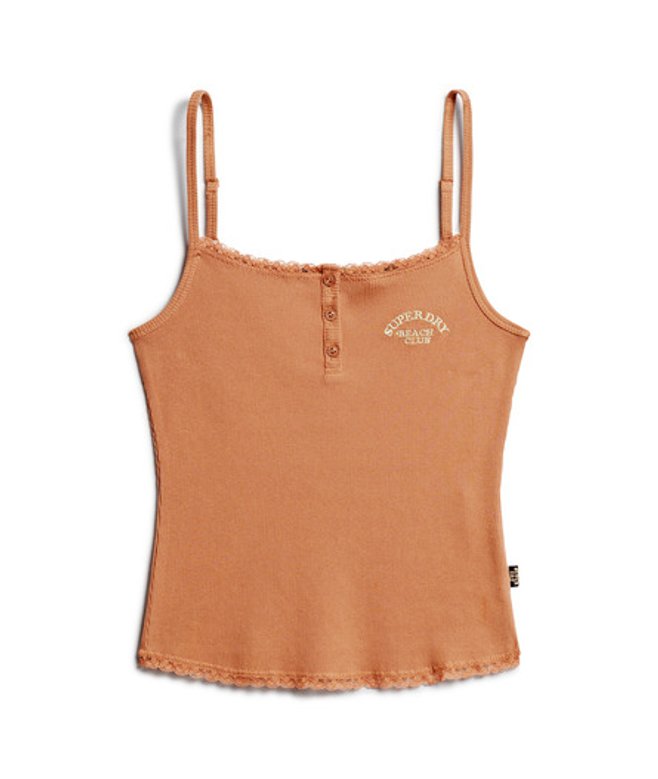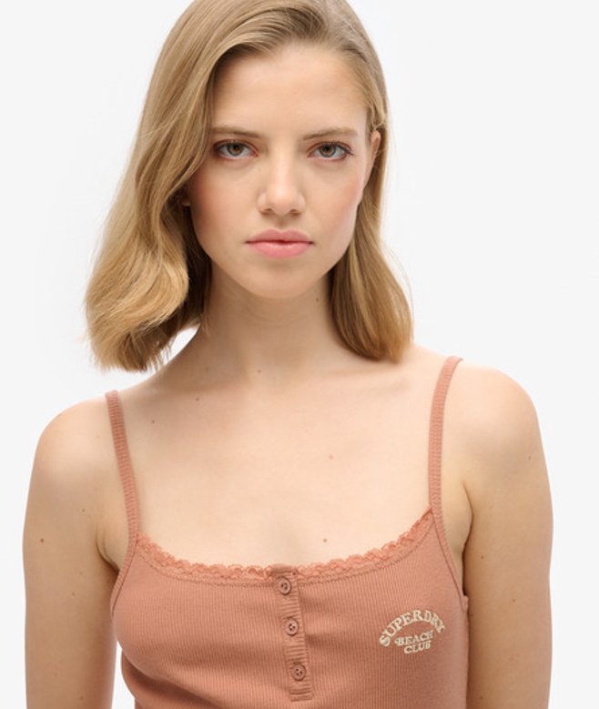 Slim fit - designed to fit closer to the body for a more tailored look Part of the Athletic Essentials Collection Ribbed material Adjustable spaghetti straps Lace trimmings Button feature Embroidered Superdry logo Signature Superdry tab