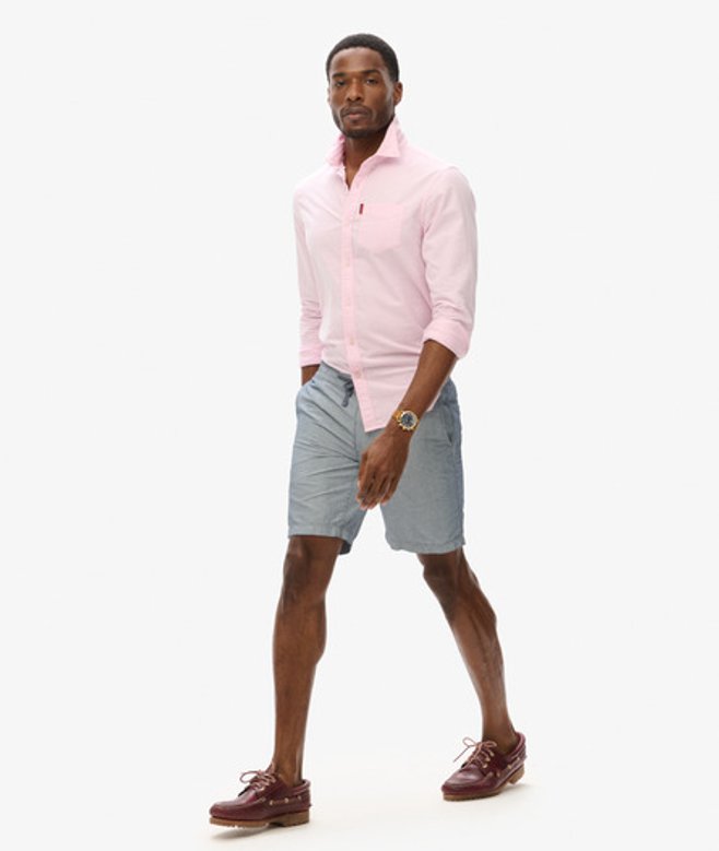 Go for your normal size Linen & cotton in conversion blend fabric Button fastening, zip fly and drawstring adjuster Two front pockets Two button-fastened back pockets Subtle Superdry logo patch above back pocket