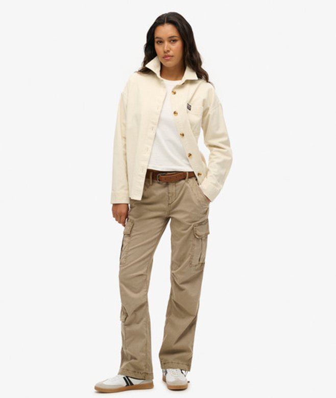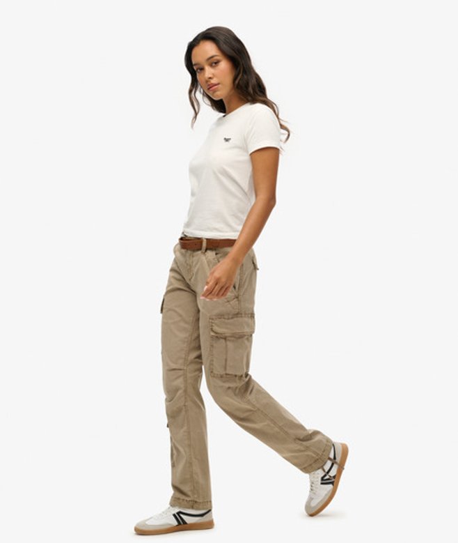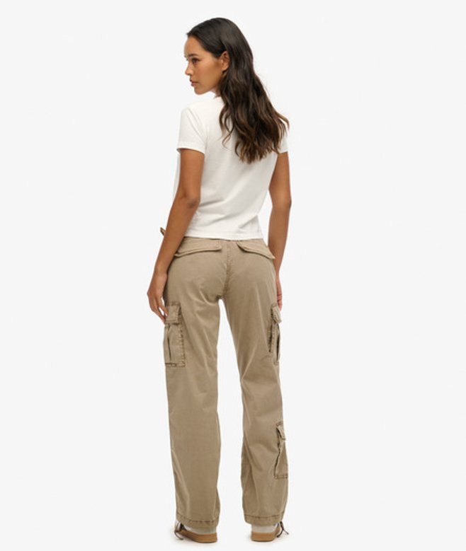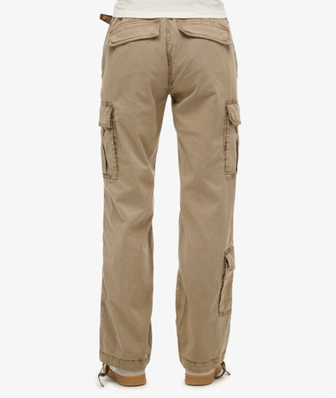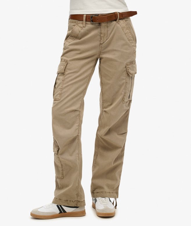 Superdry Ladies Loose Fit Low Rise Straight Cargo Pants, Beige