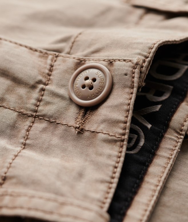 Low rise Button and zip fastening and adjustable cords Seven external pockets Cuffs with adjustable cords Signature contrast tabs on the side pocket