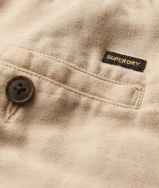 Go for your normal size Linen & cotton in conversion blend fabric Button fastening, zip fly and drawstring adjuster Two front pockets Two button-fastened back pockets Subtle Superdry logo patch above back pocket