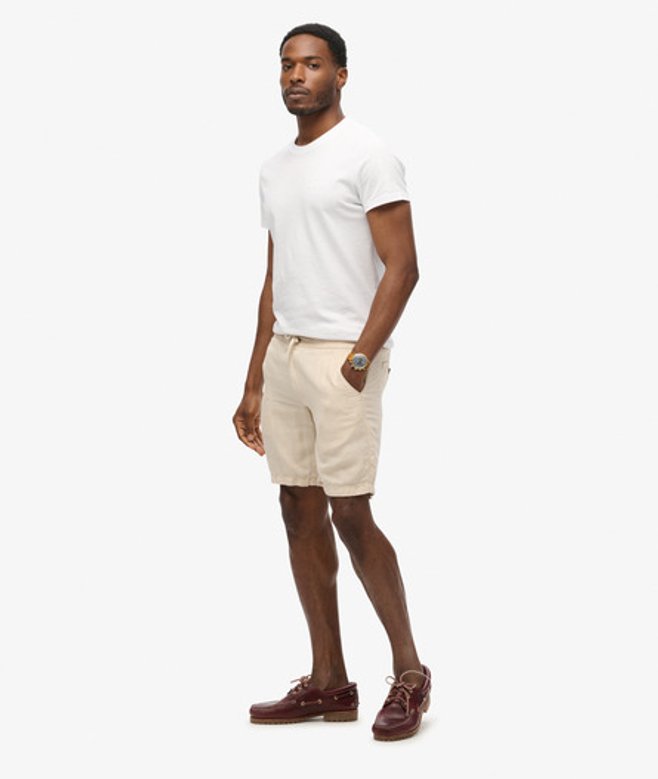 Superdry Men's Drawstring Linen Shorts Brown / Stone Grey