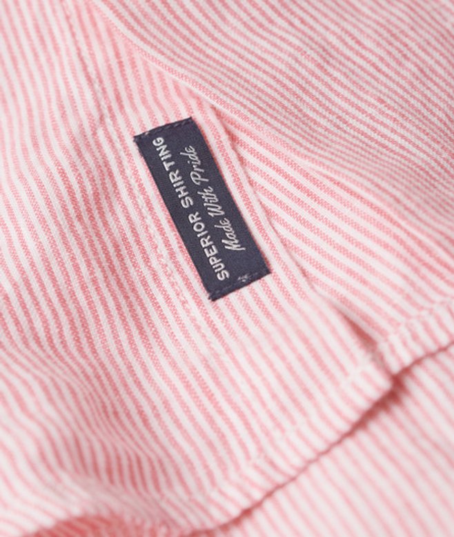 Linen fabric Regular collar Long sleeves Button fastening Button cuffs Box pleat back Curved hem Superdry logo patch on the lower placket Signature Superdry tab on the sleeve Side seam logo tab Yarn dyed to give the striped finish