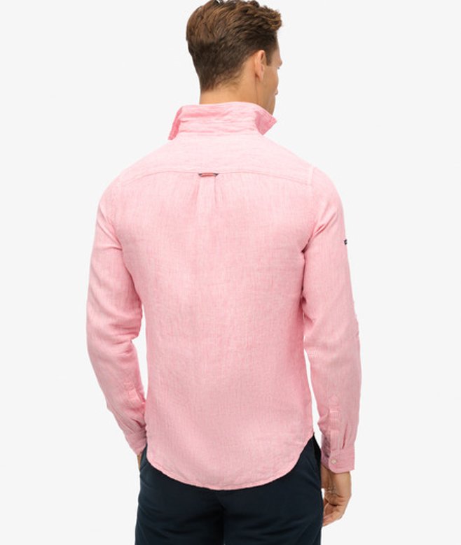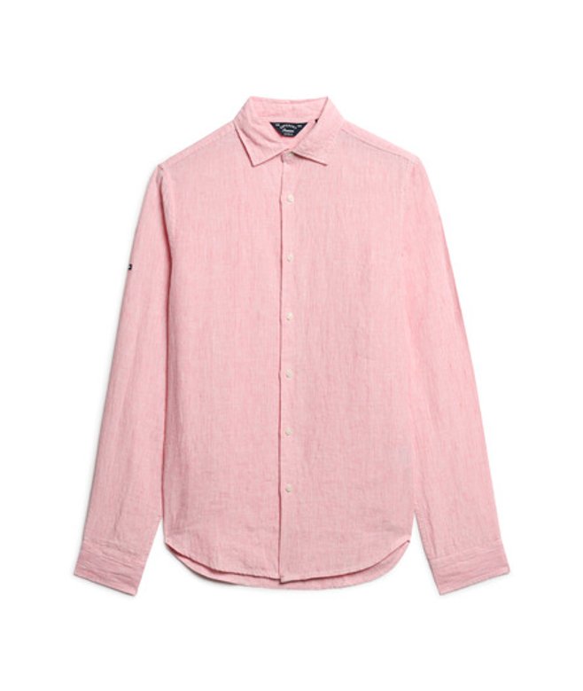 Superdry Men's Casual Linen Long Sleeve Shirt Pink / New House Pink Stripe