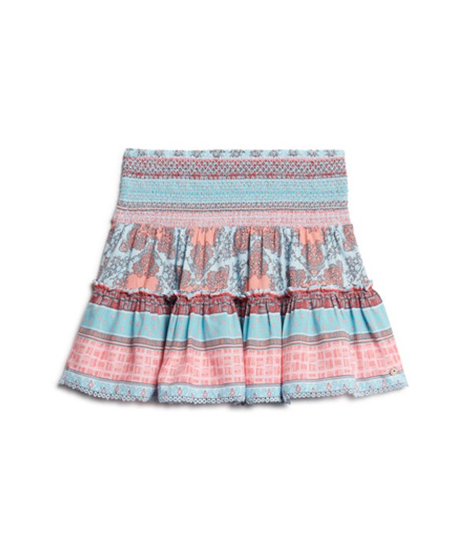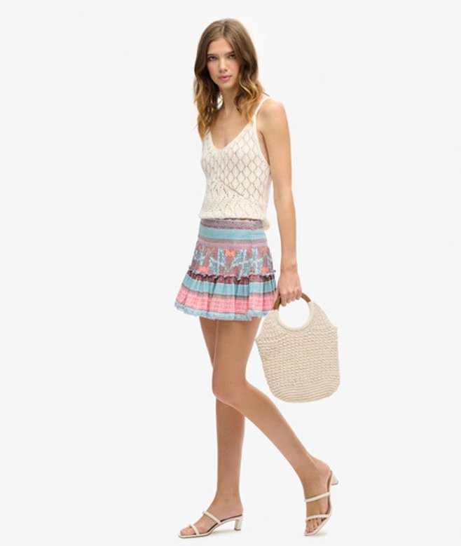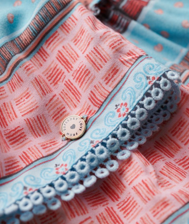 Loose Fit - where comfort meets cool, a stylish loose cut makes this a must-have shape Smocked waist Tiered skirt All over print Lace detailing Superdry branding button