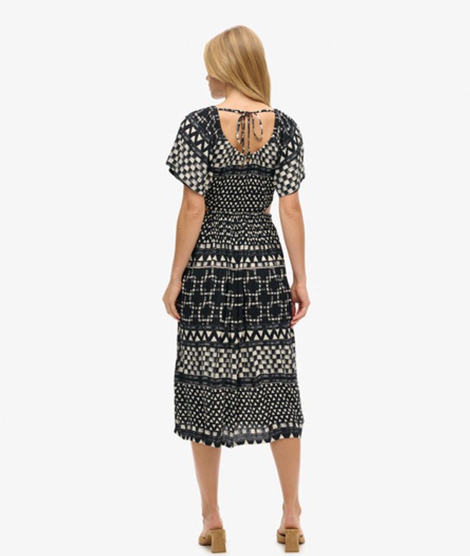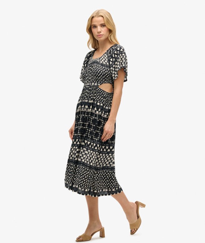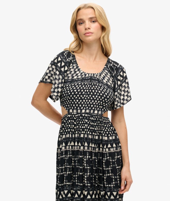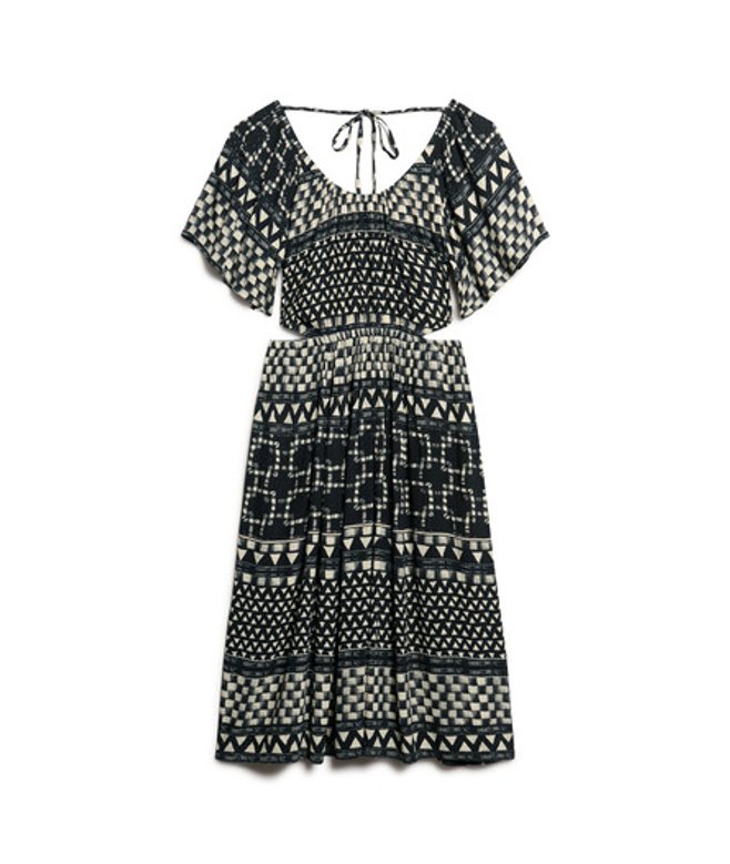 Superdry Women's Printed Cut Out Midi Dress Black/white / Shirbori Layer Mono | ricciano UNITED KINGDOM