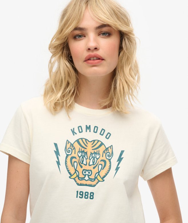 Superdry Women's x Komodo Tiger Fitted T-Shirt White / New Chalk White