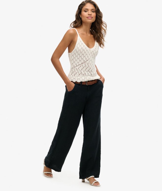 Superdry Women's Linen Low Rise Pants Black