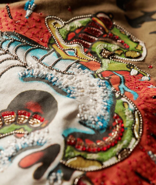 A reimagined vintage classic with cultural motifs from the East to create a striking take on this distinctive style.