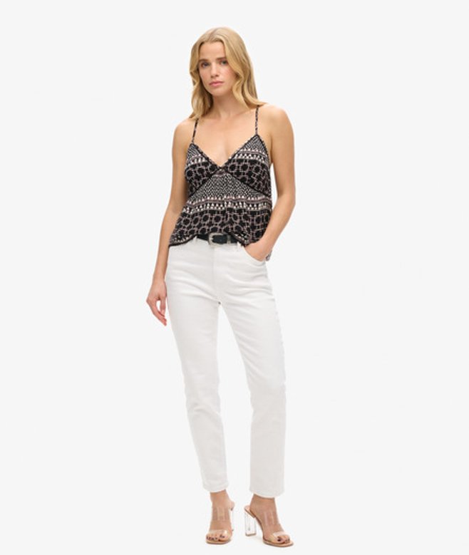 Superdry Women's Printed Woven Cami Top Black / Shirbori Layer Mono | ricciano UNITED KINGDOM