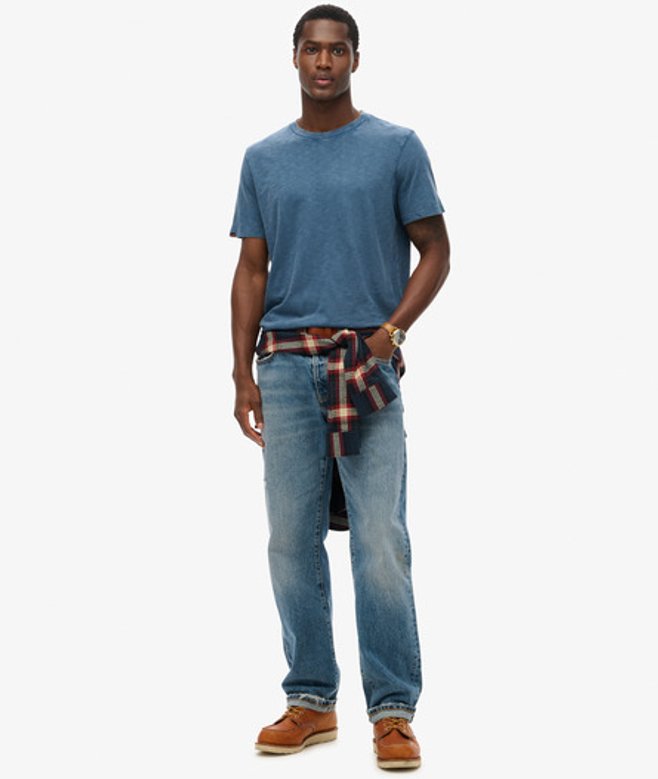 Superdry Men's Crew Neck Slub Short Sleeved T-shirt Blue / Dry Slate Blue