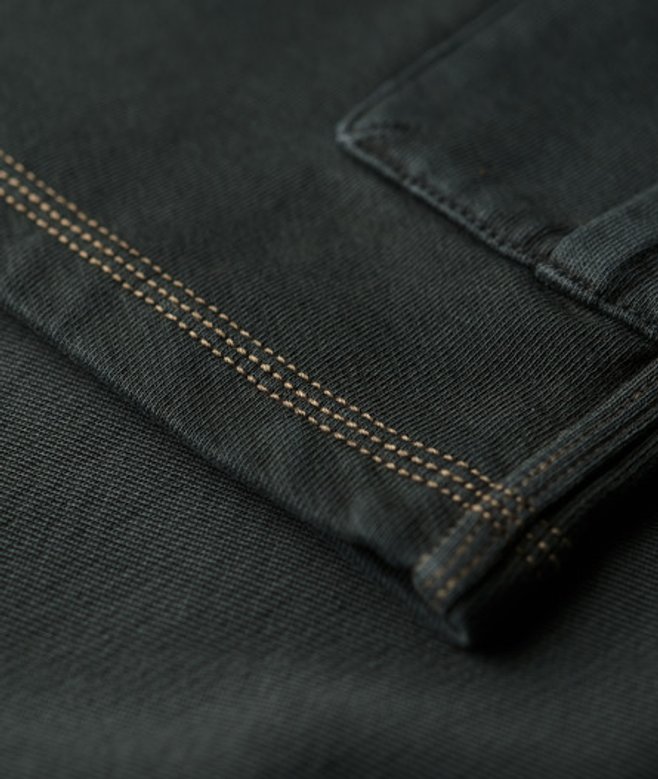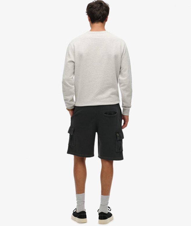 Go for your normal size Internal drawstring Two side pockets Two cargo-style pockets Back pocket Contrast stitching Unbrushed lining Superdry patch