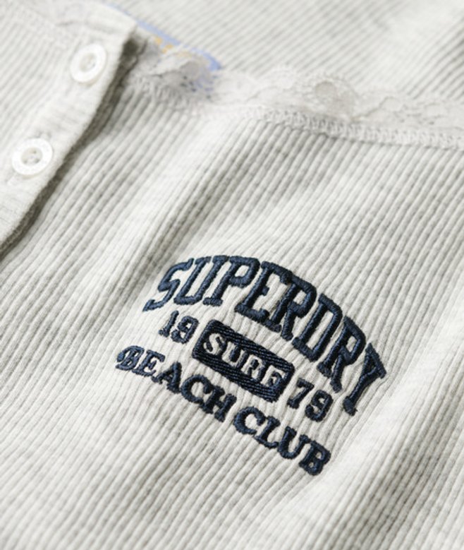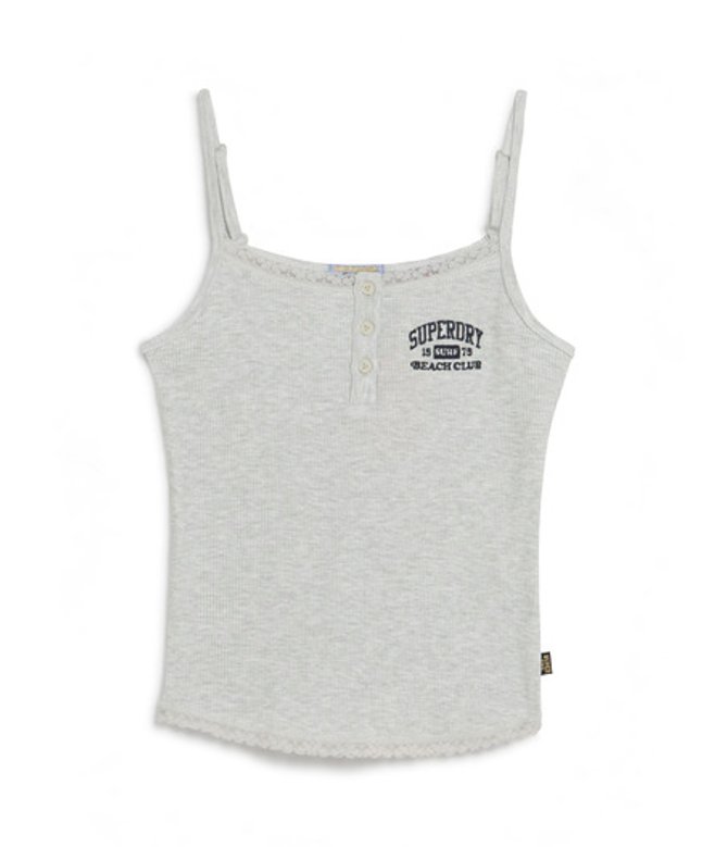 Slim fit - designed to fit closer to the body for a more tailored look Part of the Athletic Essentials Collection Ribbed material Adjustable spaghetti straps Lace trimmings Button feature Embroidered Superdry logo Signature Superdry tab
