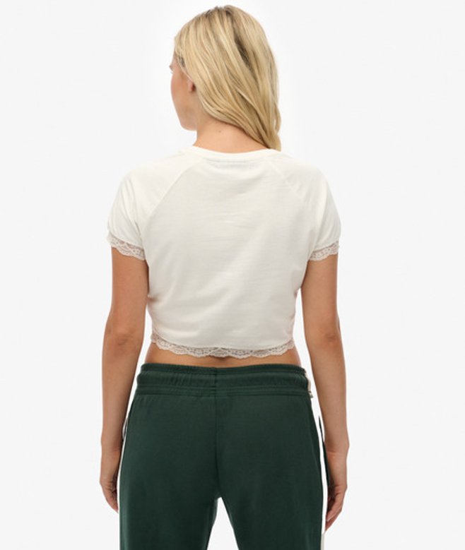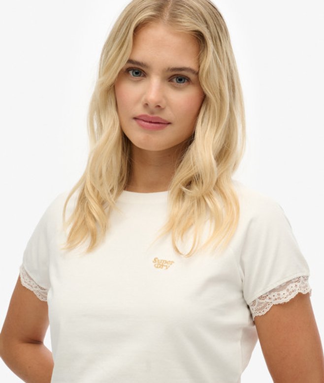 Superdry Women's 90s Lace Trim T-shirt White / Off White