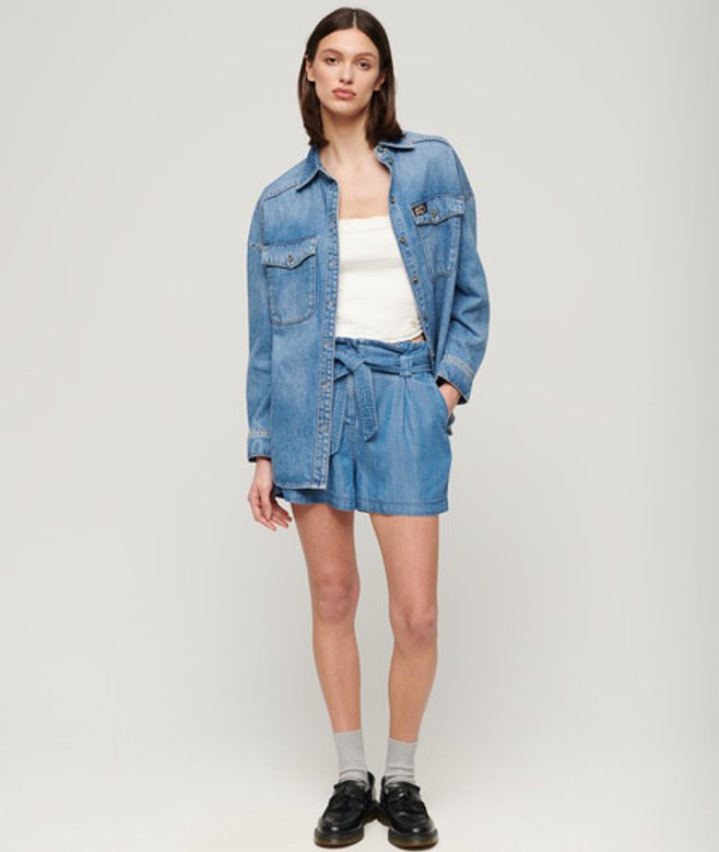 Slim fit - designed to fit closer to the body for a more tailored look Strapless Smocked fit Cropped style Frilled hem Metal Superdry tab