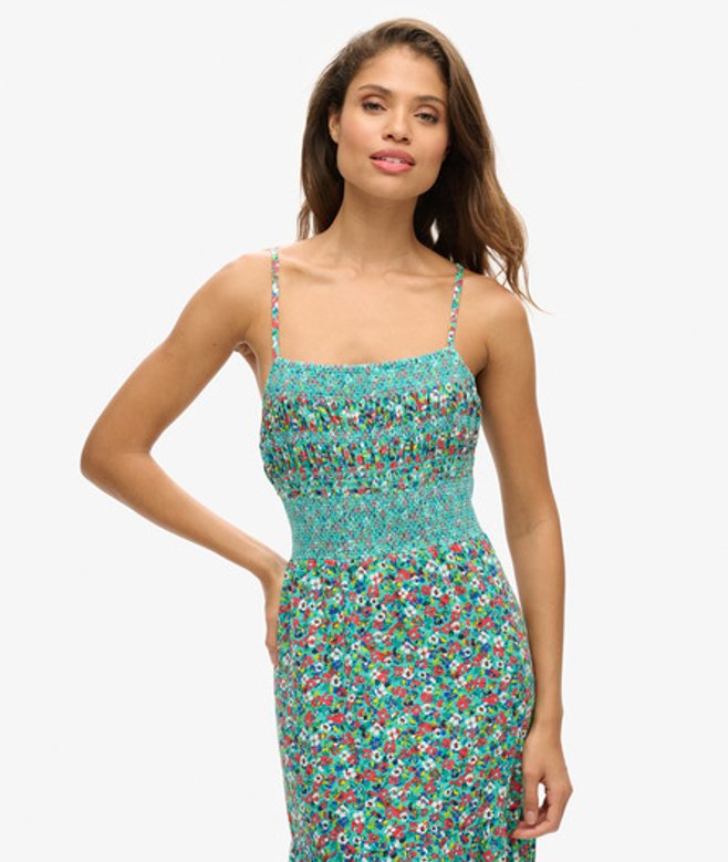 Superdry Women's Cotton Printed Smocked Cami Maxi Dress, Green & Red | ricciano UNITED KINGDOM