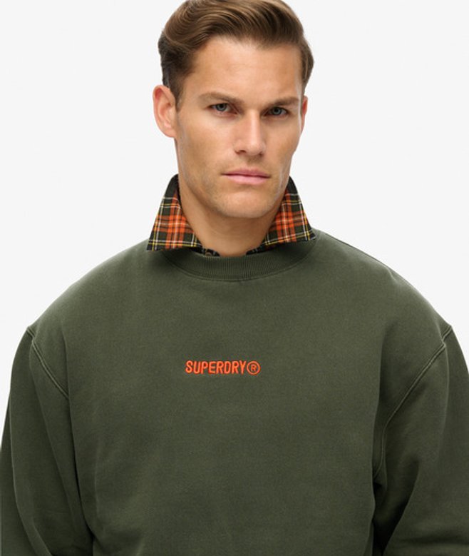 Superdry Men's Micro Logo Graphic Loose Crew Sweatshirt Khaki / Army Khaki